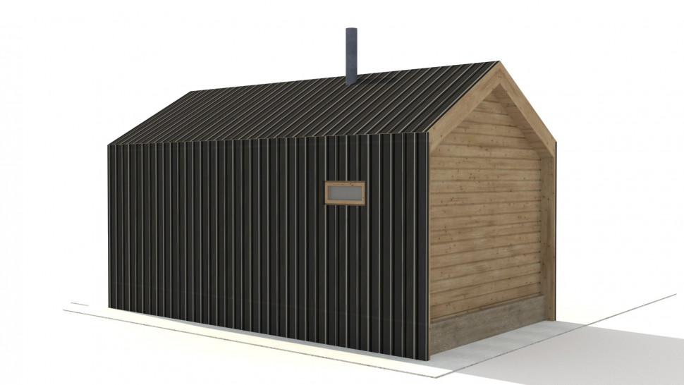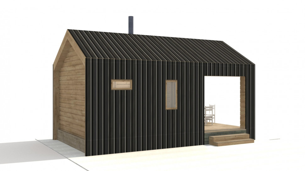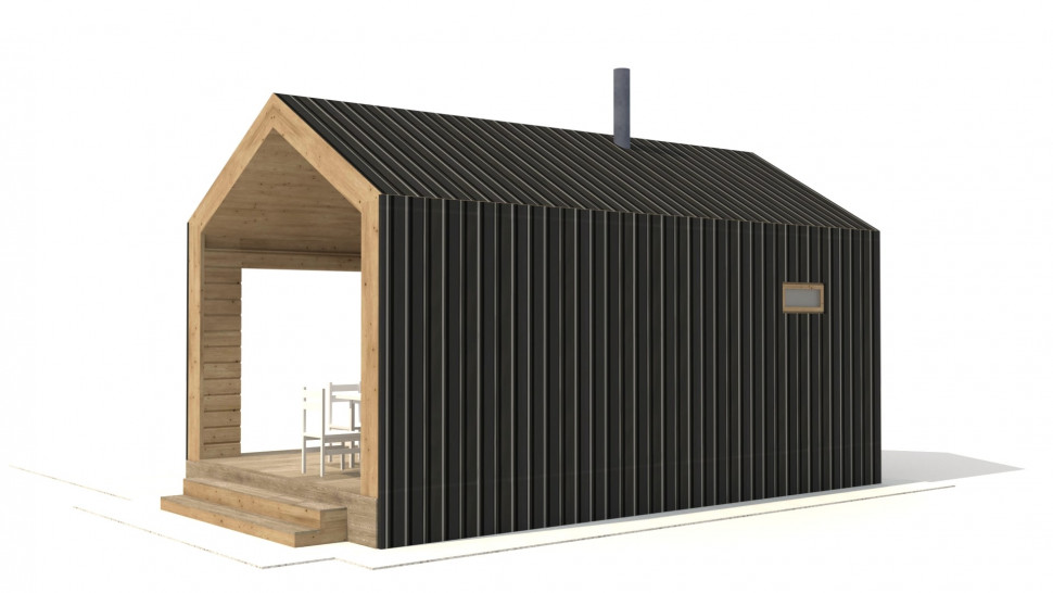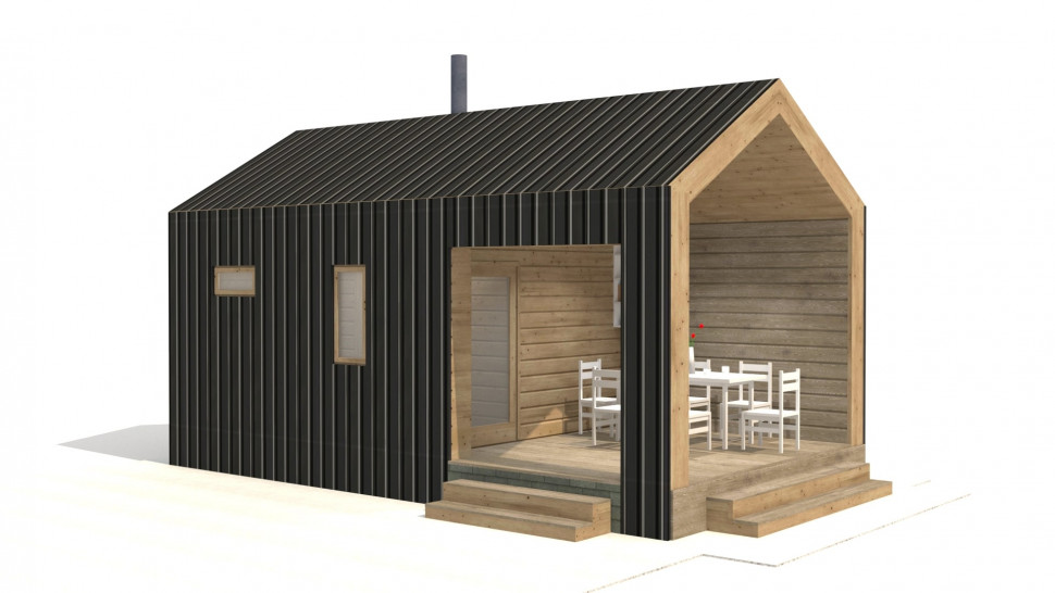 Проект небольшой бани в стиле БарнХаус (Barn house) с наружными размерами 7 на 4 м, внутренние – 24 м. кв. Спроектирована для размещения на участке рядом с домом в аналогичном стиле для создания единой архитектурной композиции.