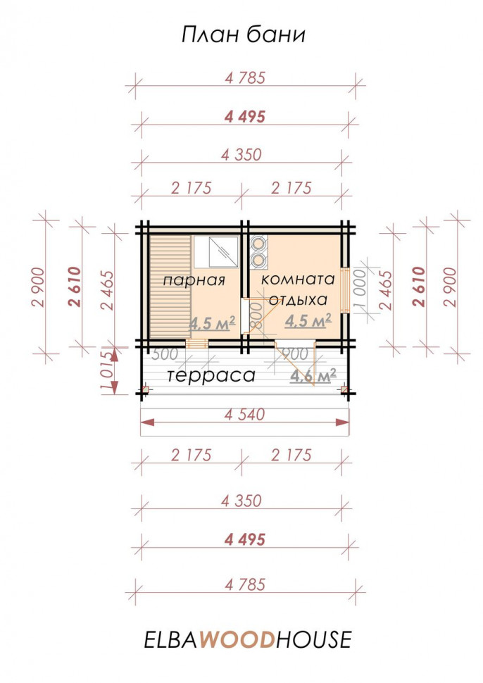 Баня из двойного бруса с террасой 4.5х3.6 (9 кв.м) , можно заказать воспользовавшись формой на сайте или связавшись с нашим менеджером по телефону +7 (499) 677-52-28. Мы предлагаем бесплатный выезд на замер и консультации, живое портфолио, квалифицированные бригады по три-четыре человека, более 1300 выполненных объектов, большинство новых клиентов приходят по рекомендации. Любой из проектов «Srub.Store» может быть дополнен или изменить по вашему желанию.