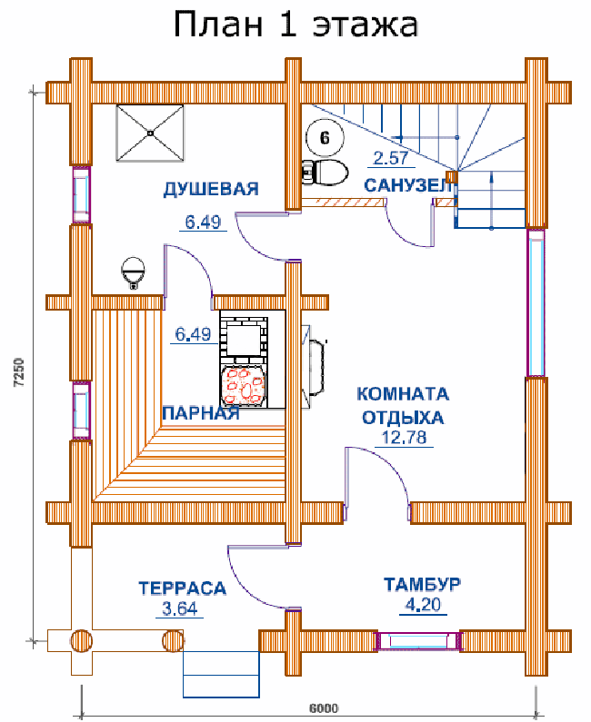 Баня из рубленного бревна 6х7,3 м, 62.6 кв. м с мансардой , можно заказать воспользовавшись формой на сайте или связавшись с нашим менеджером по телефону +7 (499) 677-52-28. Мы предлагаем бесплатный выезд на замер и консультации, живое портфолио, квалифицированные бригады по три-четыре человека, более 1300 выполненных объектов, большинство новых клиентов приходят по рекомендации. Любой из проектов «Srub.Store» может быть дополнен или изменить по вашему желанию.