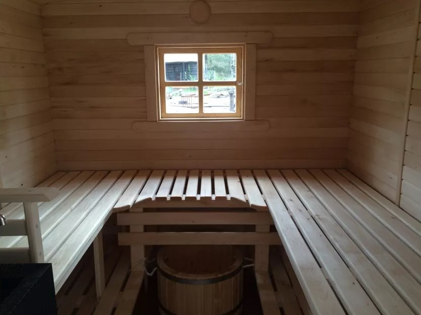 Внутренняя отделка может быть выполнена из липы, осины или ольхи, а между обшивкой и основной стеной проложена теплоизоляция.