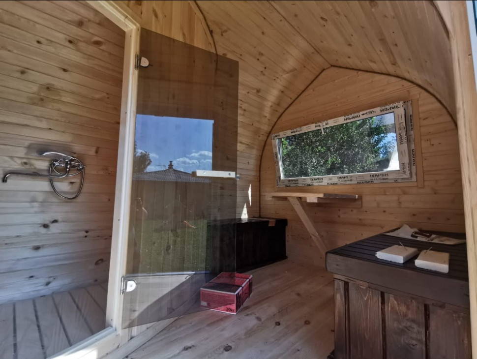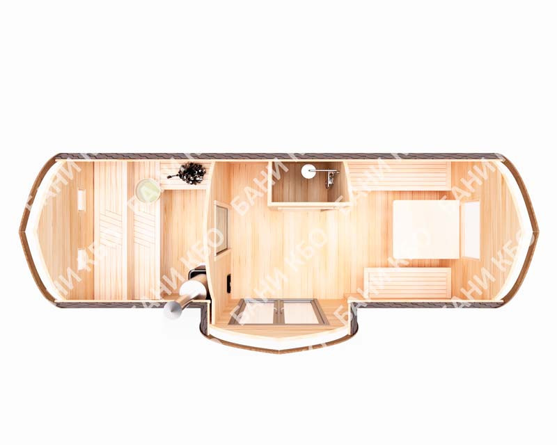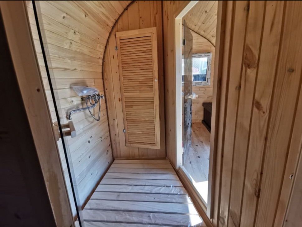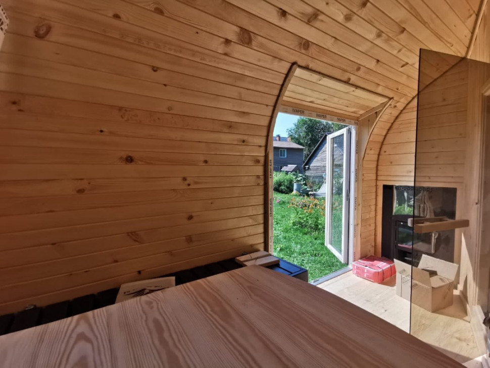 В бане-викинге 6х2,2 м одновременно может парится до 6 человек. Благодаря компактным размерам быстро и легко прогревается. Оригинальный внешний вид, станет украшением любого приусадебного участка.