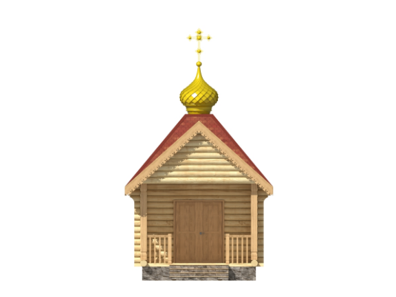 В качестве строительного материала используется оцилиндрованное бревно. Оно является достаточно прочным и долговечным. Его диаметр составляет 20 см. Длина постройки - 5,6 м. Ширина - 3,6 м. Общая площадь - 20 кв.м. Такие часовни возводятся на территории небольших населенных пунктов: в коттеджных поселках, деревнях и селах. Конструкция обладает приятным эстетическим внешним видом.