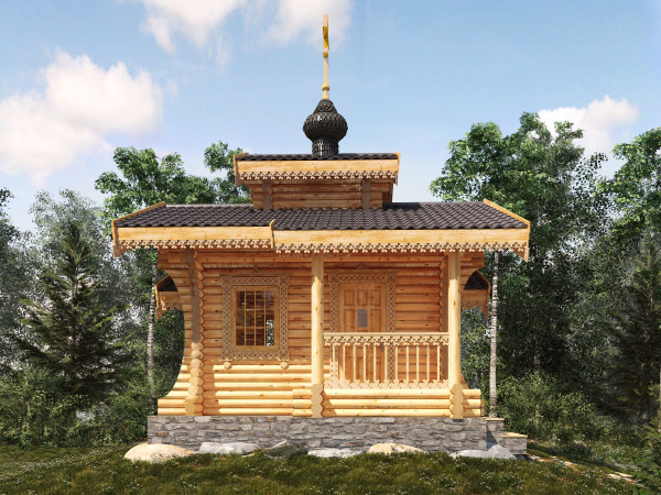 Часовня из бревна 23,32 кв.м является отражением традиционного русского деревянного строительства религиозных объектов – монастырей, соборов, церквей, часовен и т.п. Небольшая площадь, необходимая под застройку, позволяет реализовывать проект часовни в небольших локациях.