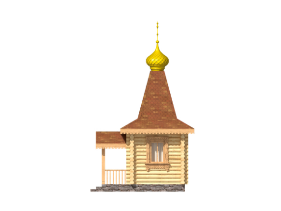 Миниатюрная часовня с высокой шатровой крышей прекрасно смотрится и среди деревьев, и на открытом пространстве. Фасад маленькой часовни из бревна (9,54 м²) дополнен крытым крыльцом. Строение очень прочное, ему не повредят сильные морозы, ветра, перепады температур. Не нуждается в мощном фундаменте. Внутри тепло зимой и прохладно летом.