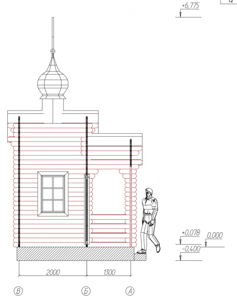 - Диаметр купола: 50 см (D50). Крыша представляет собой каркасную конструкцию, обшитую вагонкой, увенчанную декоративной главкой с крестом.