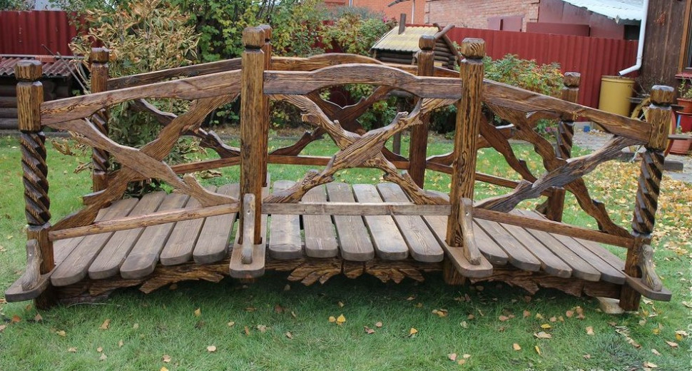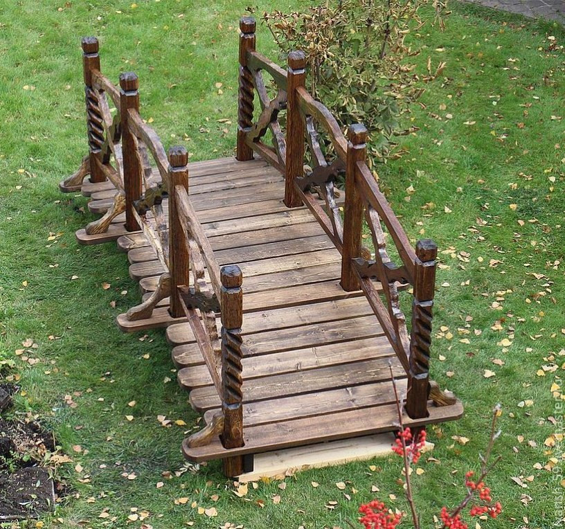 Декоративный деревянный мосток для дачи, длинна – 3 м, ширина - 1,7 м, высота – 1,2 м. Изготовлен из сосны. Такой мосток станет оригинальным украшением любого приусадебного участка. Послужит отличным дополнением к искусственному водоему, «сухому ручейку, или может служить подставкой для растений. Размеры, варианты отделки, декор и конструкция могут быть изменены и/или дополнены по вашему желанию