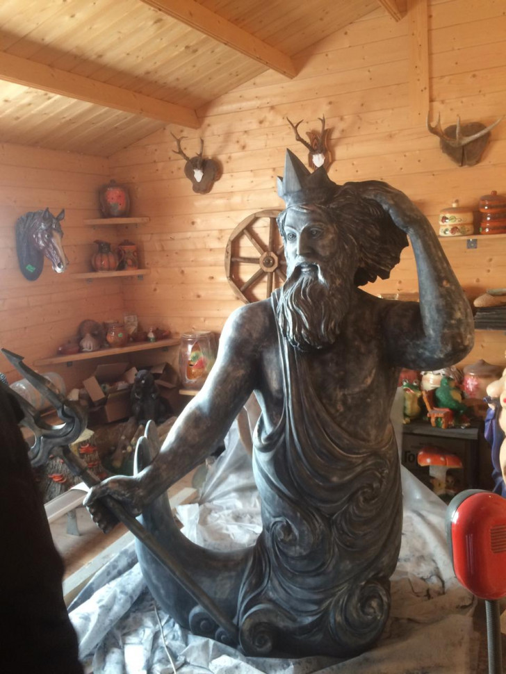 Скульптура Нептун и Русалка, персонажи вырезаны из цельных массивов древесины. Высота 2 метра. Подойдет для оформления территории рядом с водоемом, приусадебного участка, организации тематических мероприятий. Размеры и варианты отделки обговариваются при заказе. Цена указана приблизительно, окончательную стоимость и сроки выполнения уточняйте у менеджера, тел. +7 (499) 677-52-28