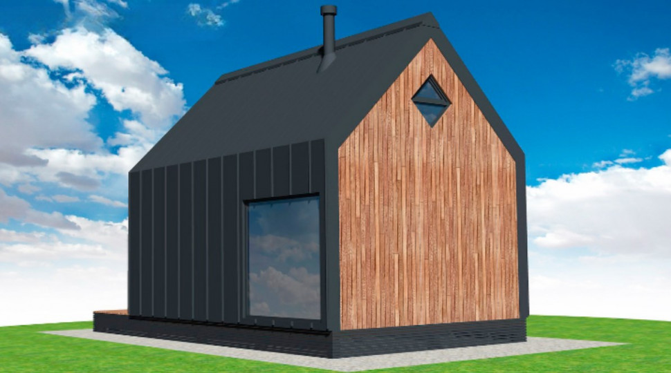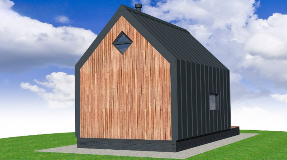 Проект рассчитан на круглогодичную эксплуатацию, стены наружного каркаса 15 см, и хорошо утеплены. Материал наружной отделки планкет и профилированное железо, но по вашему выбору это может быть и блок-хаус или имитация буса. Собирается на легком свайном или винтовом фундаменте.