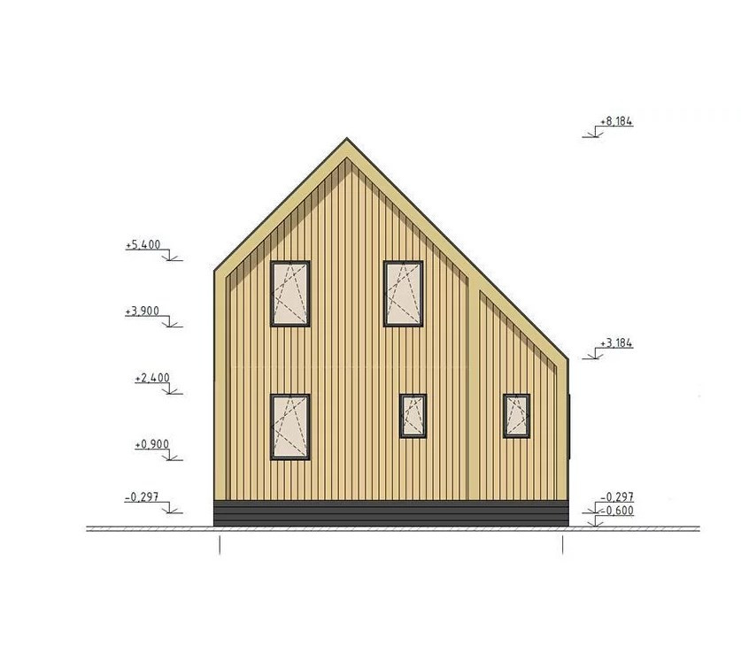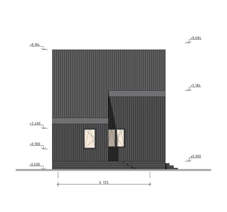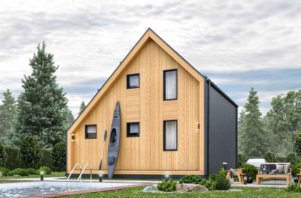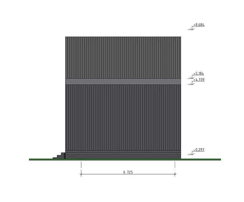 Фасады: Профилированный оцинкованный лист с полимерным покрытием RAL7024 0,45мм. Планкен хвойных пород сорт АБ, заводская окраска финской краской Teknos с шлифовкой.