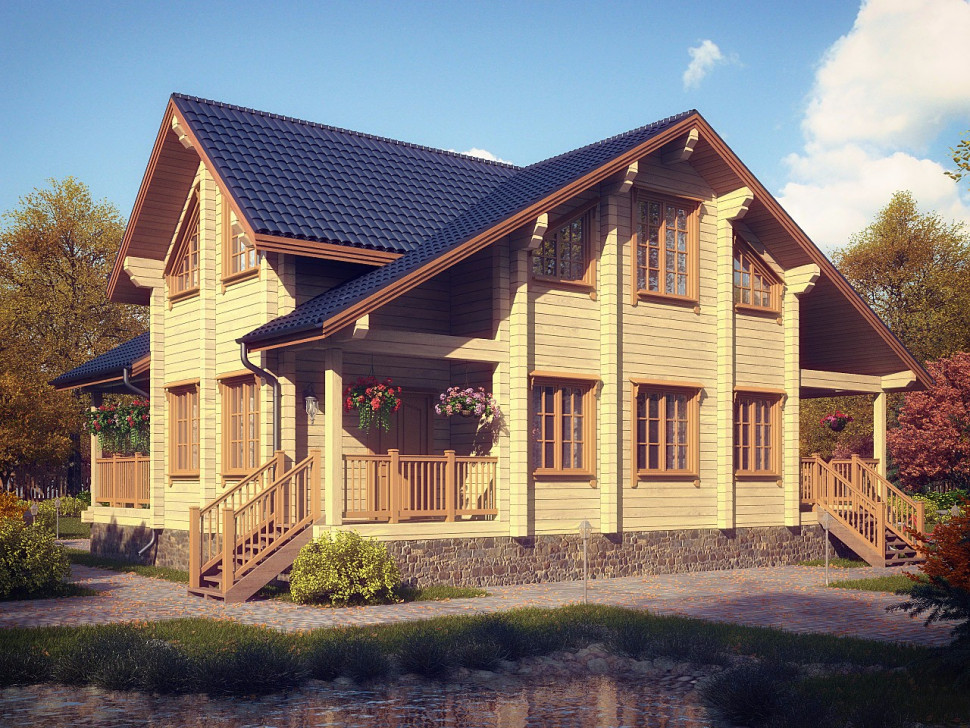 Легкая и непринужденная атмосфера загородной романтики - первое, что приходит на ум при знакомстве с этим ярким и нарядным домом из клееного бруса. "Модена" - удачный пример компактного и комфортного коттеджа, выполненного в современном классическом стиле: лаконичная сдержанность фасада в сочетании с симметричностью конструкции создают четкое ощущение упорядоченности и размеренности. Вместе с тем, отличительной особенностью этого дома можно назвать большое количество уютных небольших террас: в здании предусмотрено несколько входов, и каждый из них оснащен крыльцом или верандой со спуском в сад.