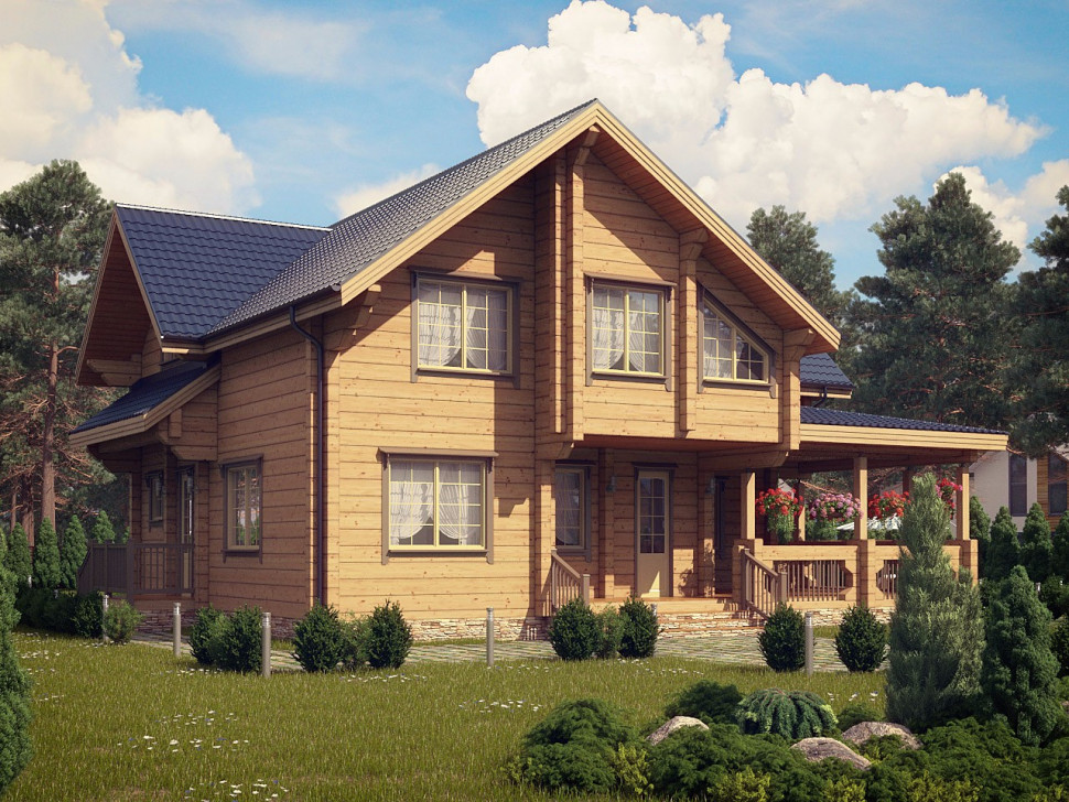 Выполненный из клееного бруса, дом по проекту "Марсель" - словно шкатулка с сокровищами, в которой сосредоточено все самое ценное - семья и домашний очаг. Это классический коттедж с яркой индивидуальностью, которую ему придает нестандартное объемно-планировочное решение и искусно вплетенные в экстерьер детали.