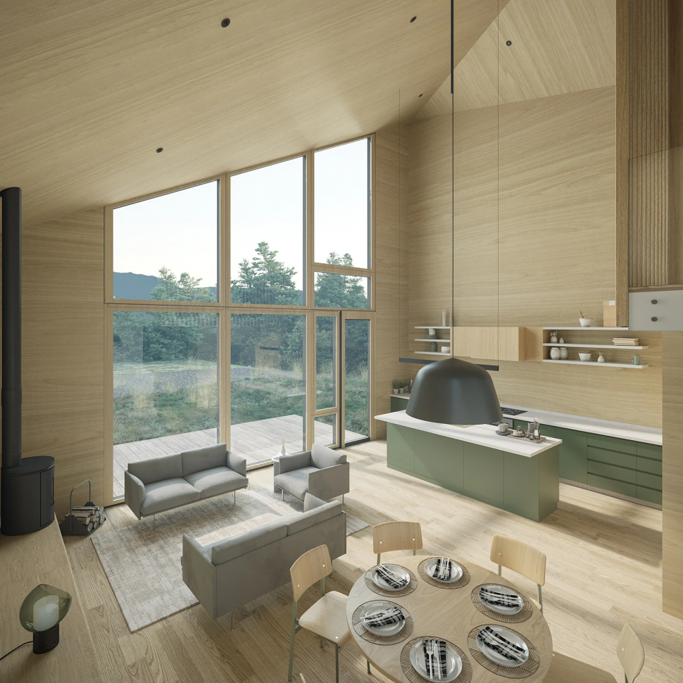 4. Экологичность: Дом спроектирован с учетом максимальной сохранности природных ресурсов и минимизации отходов, что делает его идеальным выбором для тех, кто заботится об окружающей среде.
