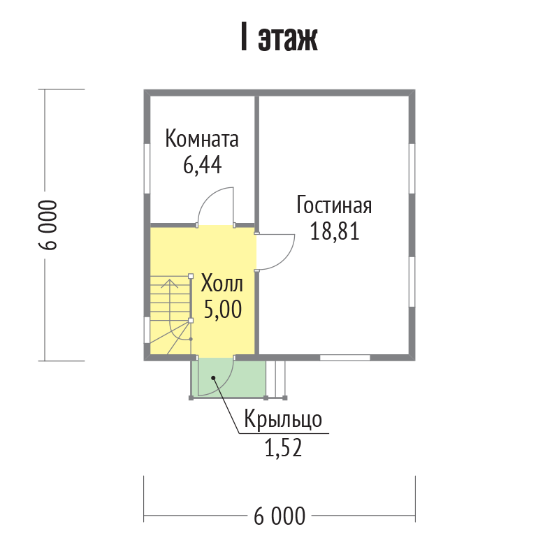 Небольшой, но очень изящный дом отличается высокой остроконечной крышей, заметной издали. На первом этаже каркасного дома в стиле фахверк (6×6 м, 47 м²) с мансардой расположены холл с лестницей, гостиная и спальня.