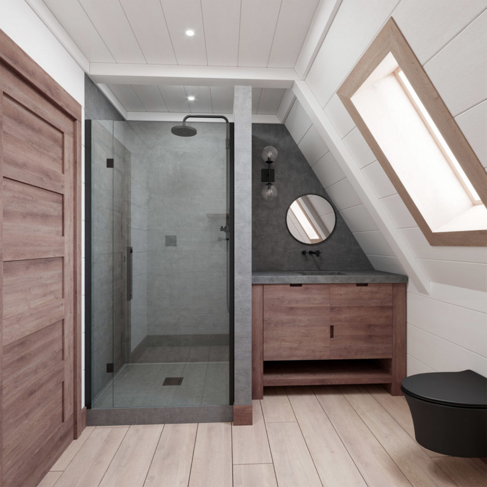 | Лестница приставная на мансарду Полы: Половая доска из сосны 28мм В мокрых зонах цсп/гсп 10мм Гидроизоляция Стены: Имитация бруса 130х18мм, сосна, сорт ав Наклонные стены и потолки Имитация бруса 130х18мм, сосна, сорт ав |