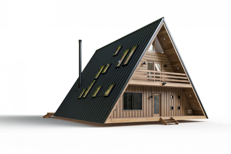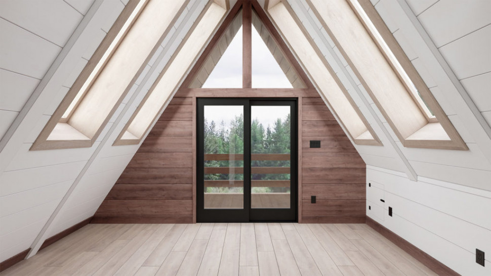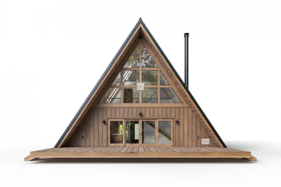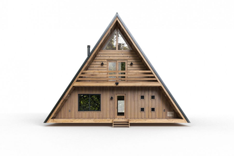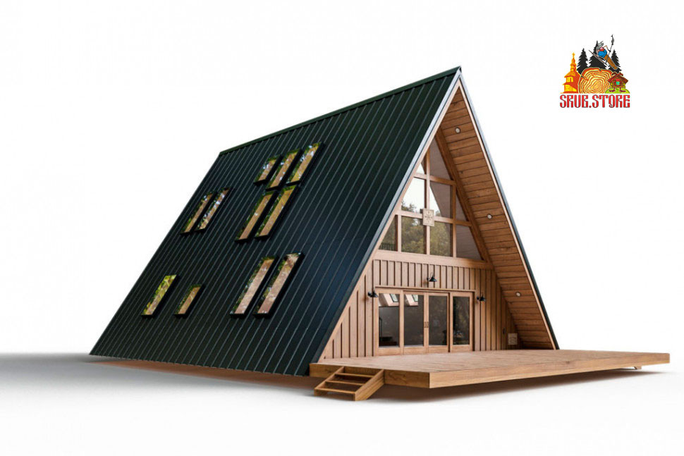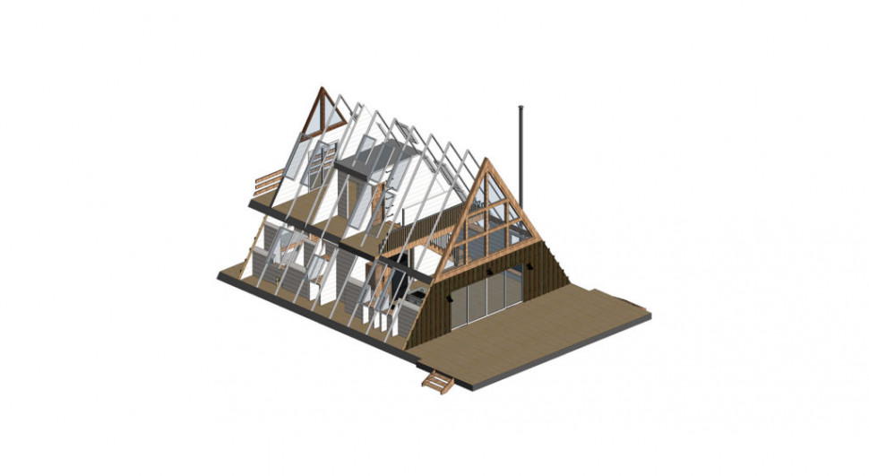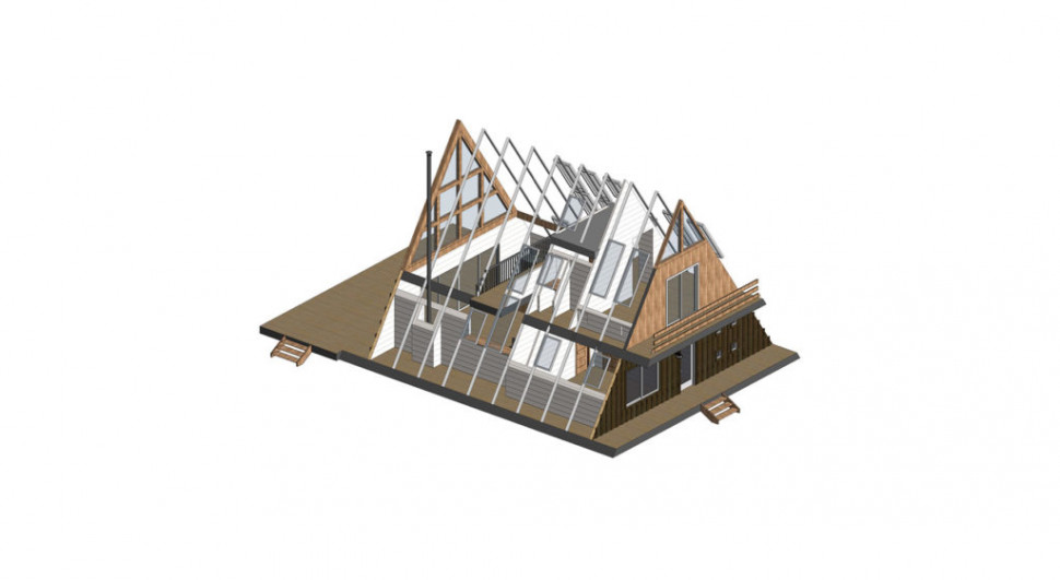 Проект большого A-frame дома с мансардным этажом. Габариты 18 на 11 метров, площадь 180 кв. м.