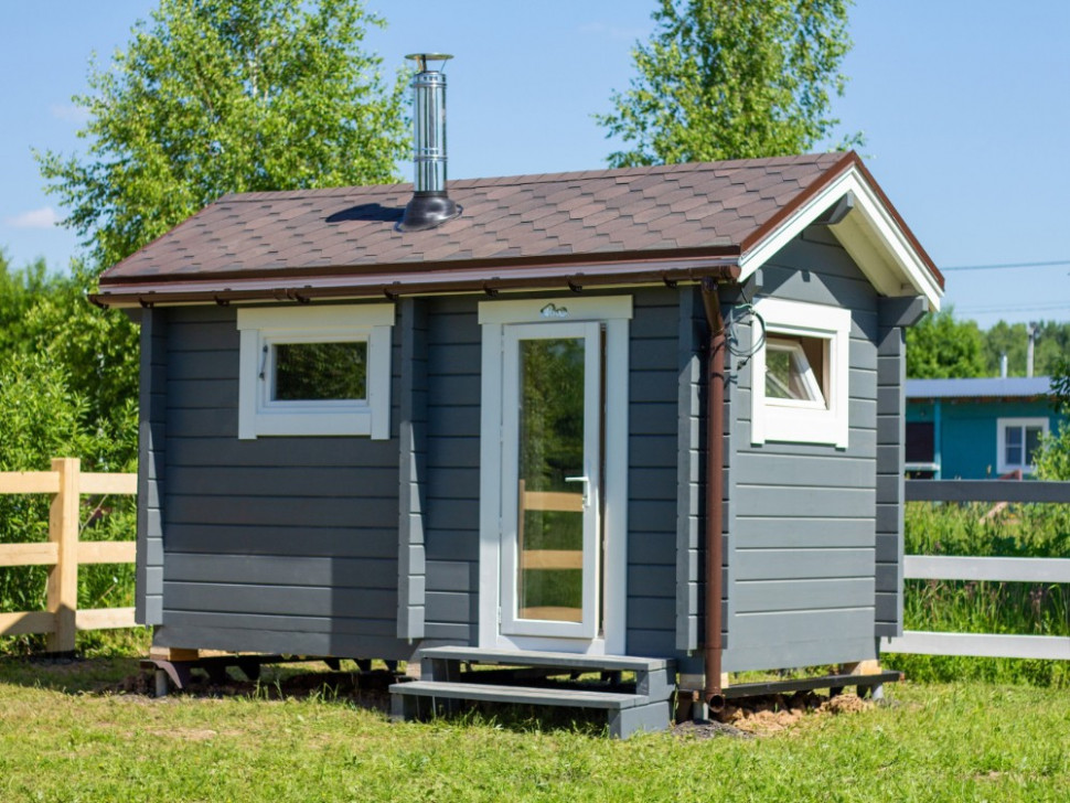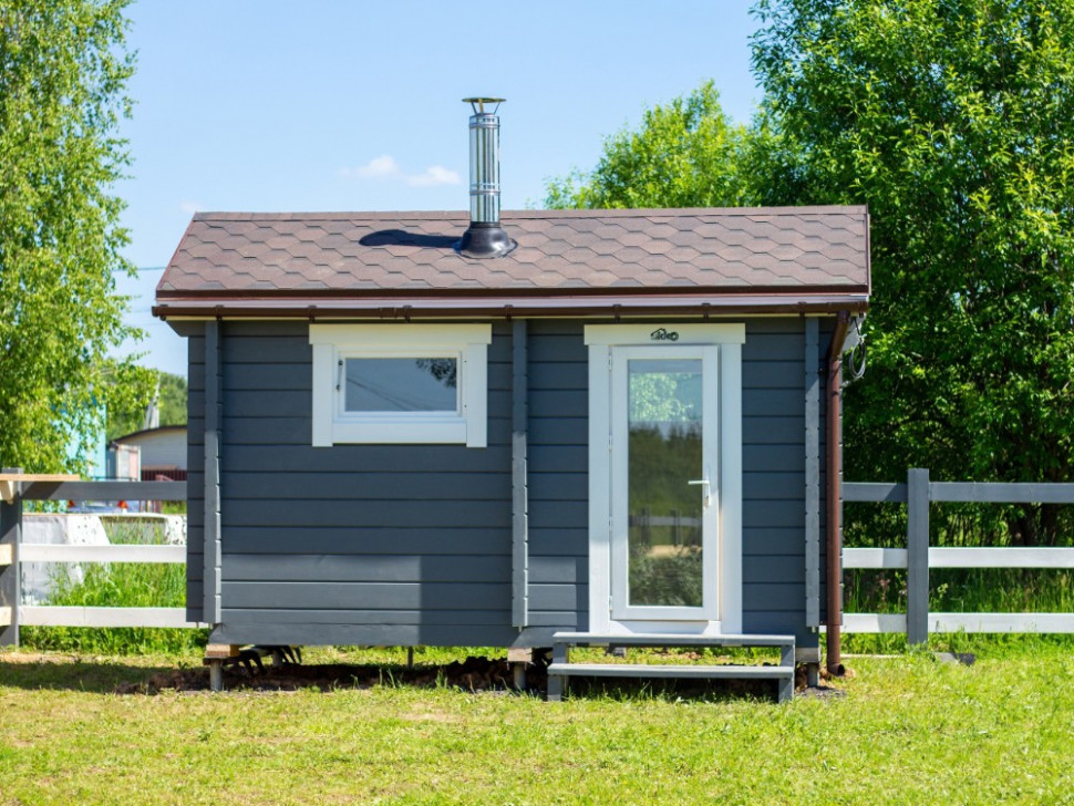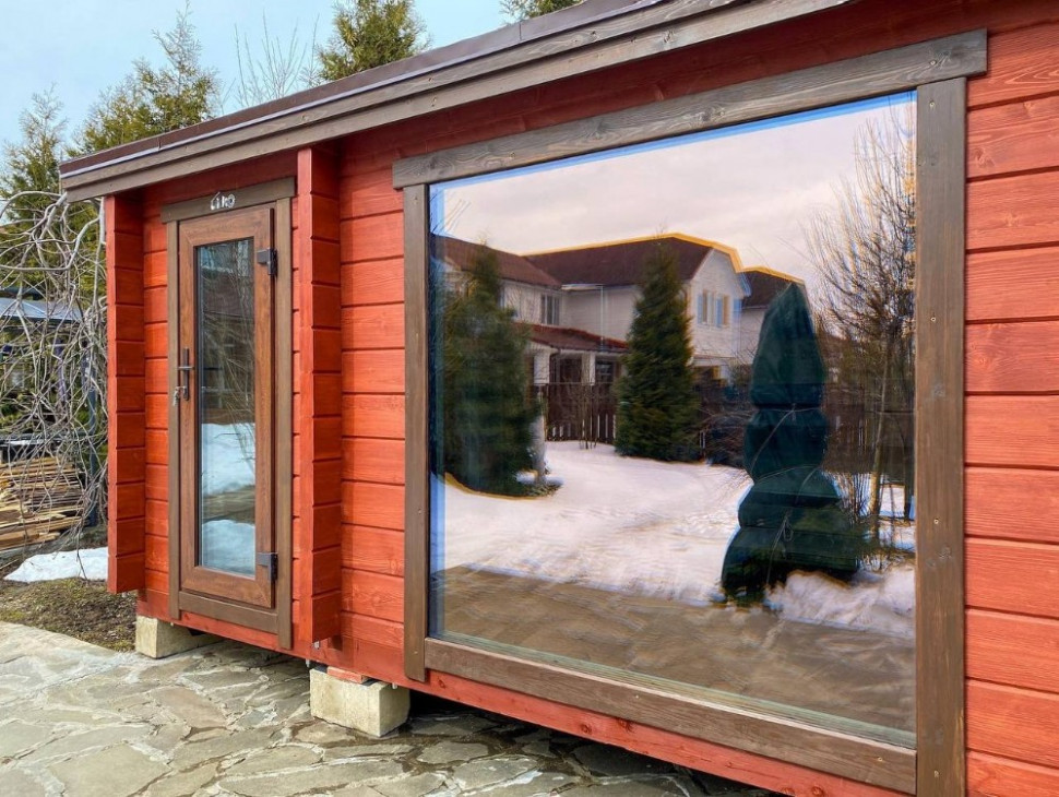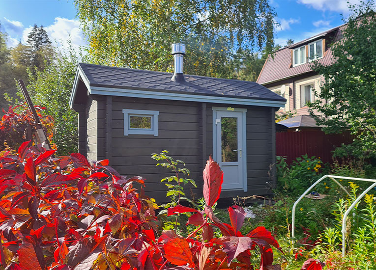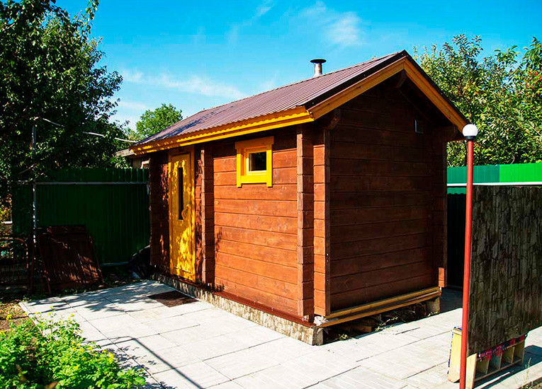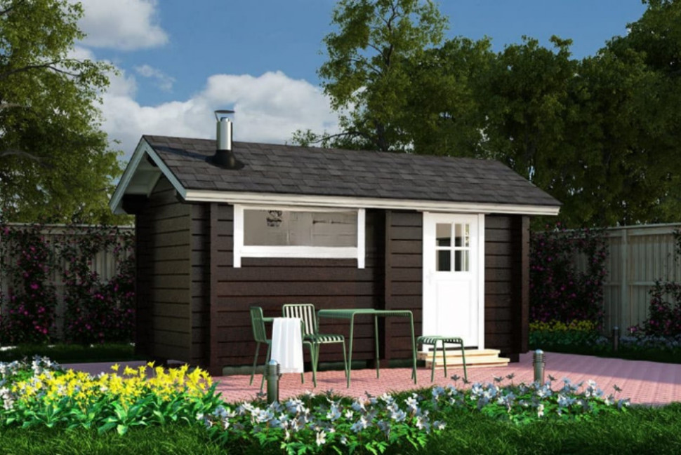 Проект мини бани 4 на 2 м, с двумя отделениями: парная 2х2 м (4 м2) и предбанник 1,8х2 (3,6 м2). Главное достоинство бани – возможность доставки и установки в уже собранном виде, на легкий блочный фундамент, т.е. буквально за несколько часов. На участке практически любого, даже самого небольшого размера.