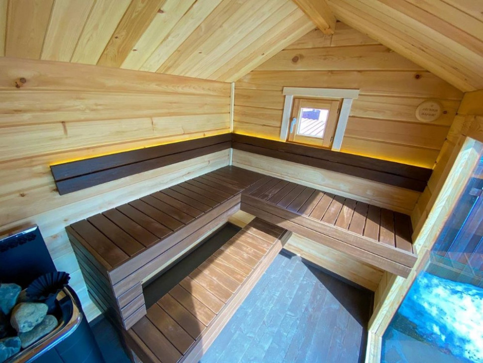 Основной материал постройки - минибрус из хвойных пород сечением 145х65 мм.