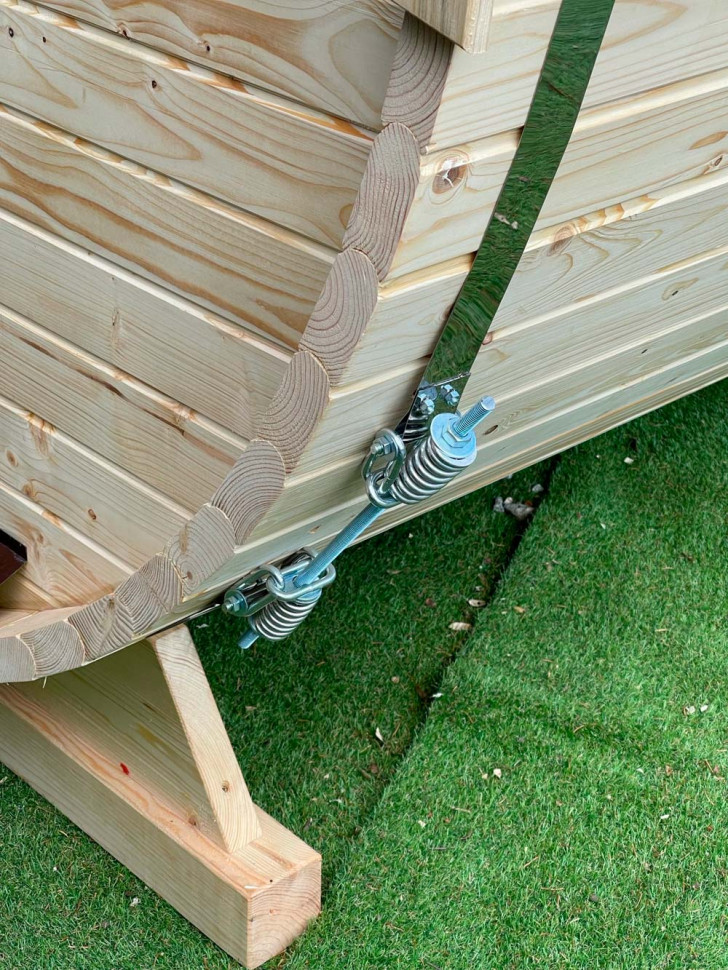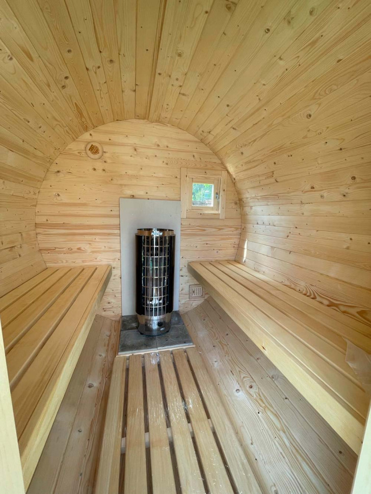 Сауна бочка занимает на земле минимум пространства, поэтому моет быть установлена на любом, даже самом маленьком дворе. По этой же причине (компактность) быстро и легко прогревается. Отличный вариант для дачи, коттеджа, кемпинг городка.