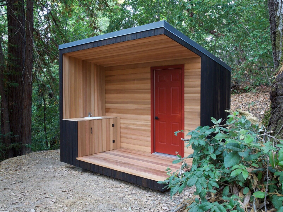 Как правило в проектах уличных туалетов все сводится к их функциональному назначению. Внешний вид и уровень комфорта ограничиваются конструкцией типа «теремок», со стульчаком внутри. Но уличный туалет и душ могут быть не менее красивыми и комфортабельными чем в вашей квартире. Как в данном проекте.