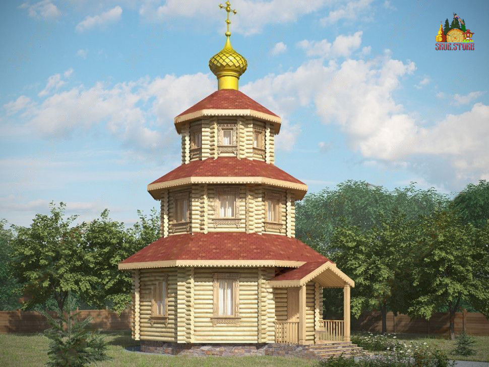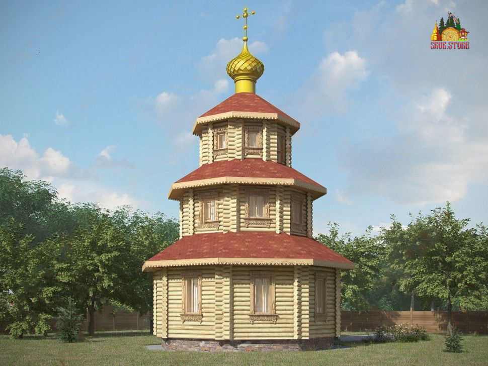 Стройное здание состоит из трёх ярусов, устремлённых ввысь. Восьмиугольный часовня 67,45 м² дополнен скромным, но очень гармоничным крытым крыльцом. Окна, изменяясь в размерах, задают и поддерживают особый архитектурный ритм.