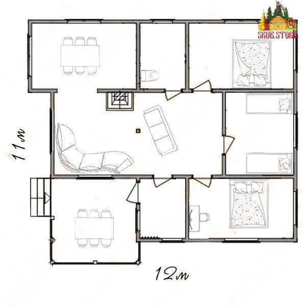 Проект сруба дома с мансардой 103,6 м2 может быть изменен (скорректирован по площади, конструкции и т.п.) по желанию заказчика.