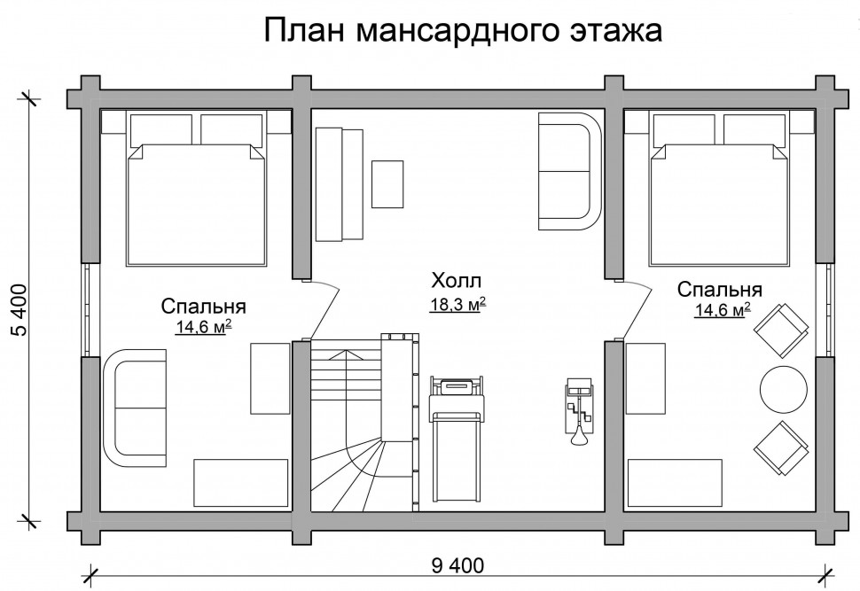 Сруб дома 112 м2 на 2 этажа позволяет возвести просторное и красивое жилое здание с террасой во фронтальной части фасада. Он уже распланирован. На первом этаже находятся: