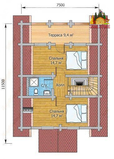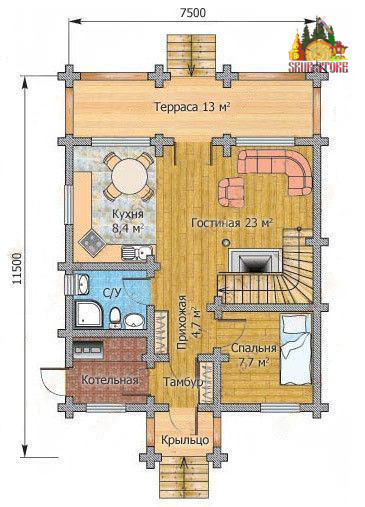 Двухэтажный сруб дома с мансардой 115 м2 из оцилиндрованного бревна, несмотря на свои достаточно компактные размеры (11,5х7,5 м), вмещает в себя 3 просторные спальни. Оцилиндрованное бревно, из которого сооружается такая постройка, обладает прекрасными экологическими свойствами, высокими показателями прочности, надежности и долговечности, позволяет поддерживать в помещениях идеальный микроклимат независимо от капризов погоды и времени года. Классический архитектурный стиль без труда впишется в любой ландшафт. Размеры, планировка помещений, экстерьер здания легко могут быть изменены в соответствии с индивидуальными пожеланиями заказчика.