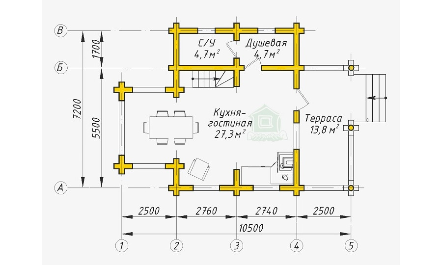 Преимущества проекта заключаются в его оперативном возведении, невысокой стоимости, прочности и низкой теплопроводности натурального природного материала – дерева.
