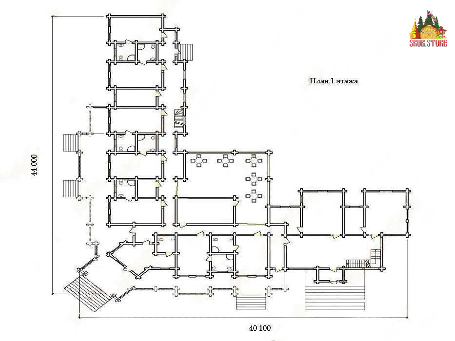 Оригинальный двухэтажный сруб гостиницы "Европа Фрегат" (12 номеров) рассчитан на комфортное проживание гостей в любое время года. Благодаря природным свойствам натуральной древесины, из которой сооружается этот уникальный гостиничный комплекс, в его просторных комфортабельных номерах круглый год поддерживается идеальный микроклимат. Представленный сруб отличается высокими показателями экологичности, прочности, надежности и долговечности. При желании заказчика, в типовой проект могут быть внесены абсолютно любые изменения, касающиеся размеров постройки, планировки помещений и внешнего вида зданий комплекса.