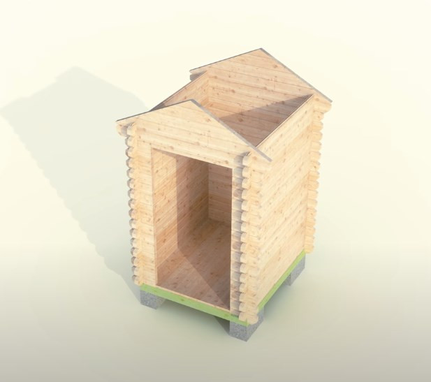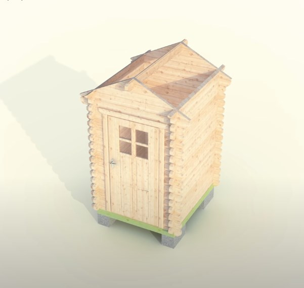 Туалет для дачи из минибруса 1,5x1,7 м. Площадь 1,7 м2. Материал – минибрус из сосны или ели (по заказу), 44 мм толщиной. Сборка на врезных замках, гарантирующих надежность конструкции. Дверь из массива древесины, может быть застекленной (как на изображениях) или глухой. Крыша двухскатная, покрыта гибкой черепицей. Устанавливается на легкие бетонный опоры, при необходимости комплектуется деревянными ступеньками.