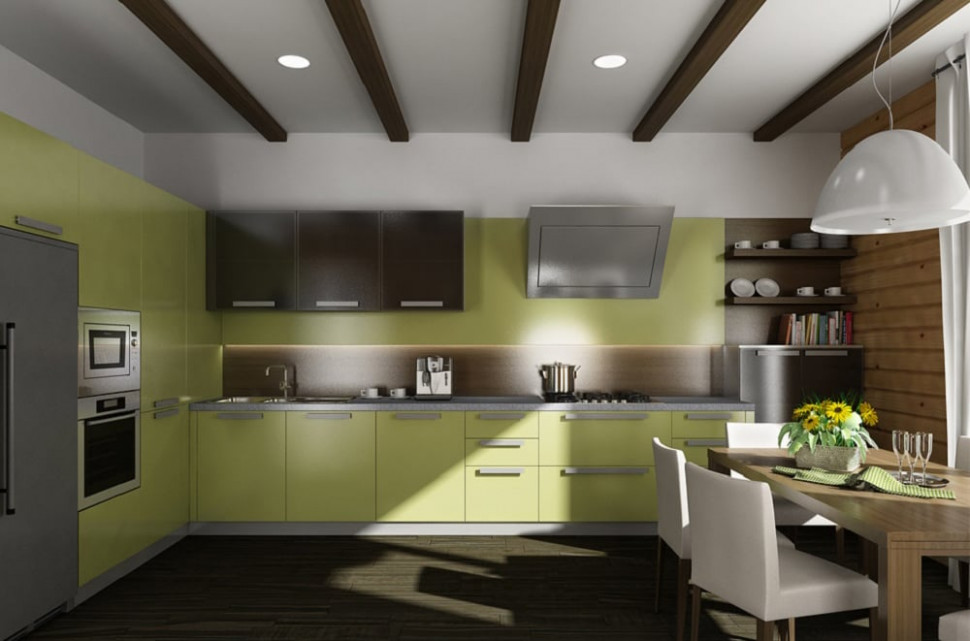 Основу функционального внутреннего пространства составляют объединённые гостиная, кухня и терраса. Они олицетворяют собой единый центр досуга. Только ввиду того, что проект создавался под более узкий семейный круг, из планировки исчезла гардеробная комната. Точнее, её функции, по задумке архитекторов, будет выполнять вместительный шкаф в гостевой.
